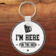 Funny I'm Here for the Beer Keychain . Black and white design but the background can be changed.