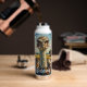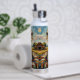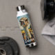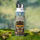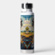 A cute personalized water bottle with an impasto close up of an ostrich on a ranch.
