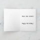 This card is great fun and good quality. I loved the humour inside and on the back. There is the opportunity to change the orientation of this card from landscape to portrait, which I did. It is relatively straightforward to amend the typeface to fit the new orientation. It was well packaged with no plastic. The printing on this card is excellent.