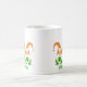 Funny personalised mug featuring three cute Irish gnomes clad in orange, green and shamrocks. Add your name in green Celtic typography.