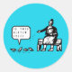 These stickers feature a funny cartoon of a woman feeding some birds. One of the birds asks, "Is This Gluten Free?" The black and white cartoon is set against a bright blue background.
