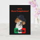A funny Birthday greeting card in Italian language featuring a rescue dog named "Charley" dressed as a Mobster with Italian flag. Says Have a Happy Birthday on front and on inside says "cause' I'm da boss of you!" all in Italian. This humourous original design and photo by artist c.a.teresa is customisable for different occasions and can be personalised with you own names and photos. Contact artist for special orders.