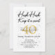 Make their milestone unforgettable with this chic 40th surprise birthday invitation, crafted to add charm and secrecy to the celebration. The headline reads “Hush Hush, Keep it a secret” in an elegant script, paired with classic serif fonts for easy-to-read details. A bold “40” anchors the design in the background, with the guest of honor’s name layered over it, all set against a soft white canvas and confetti accents in a single color for a festive finish. Every element—from name and date to address and RSVP—can be easily personalized, An ideal choice for family or corporate planners who want a refined yet playful invitation.