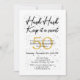 Make their milestone unforgettable with this chic 50th surprise birthday invitation, crafted to add charm and secrecy to the celebration. The headline reads “Hush Hush, Keep it a secret” in an elegant script, paired with classic serif fonts for easy-to-read details. A bold “50” anchors the design in the background, with the guest of honour’s name layered over it, all set against a soft white canvas and confetti accents in a single colour for a festive finish. Every element—from name and date to address and RSVP—can be easily personalised, An ideal choice for family or corporate planners who want a refined yet playful invitation.