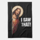 Funny Jesus "I Saw That" Christian meme design Tea Towel