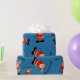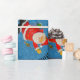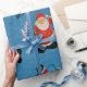 Funny Jolly Santa Claus Father Christmas Pattern Blue Background Holiday Season Gift Wrapping Paper with text Merry Christmas, you can change the text