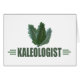 KALEOLOGIST. Humourous title for someone who loves kale! Eating kale, especially for health; cooking kale from a favourite recipe; a chef preparing kale at a restaurant or a cook at home; growing kale on a farm or in a garden; selling kale at the farmer's market. Design features a fresh giant kale leaf straight from the garden. Lots of other funny food greeting cards, note cards and stamps also available - customise it for a personalised look.