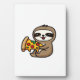 Funny Kawaii Chibi Sloth with Pizza � Cute Cartoon Plaque