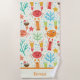 This is custom name personalised beach towel for kids featuring kawaii lobsters and crabs holding drinks and cocktails underwater. It's great looking beach towel for your kids
