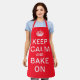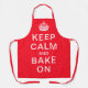 This funny apron features the quote "KEEP CALM AND BAKE ON" in classic typography and an image of the British crown on a red background. Sentiment can also be personalise to your own text. This inspirational design is a modern humourous twist on a motivational poster created by the Government of the United Kingdom as they prepared for World War II that said, "Keep calm and carry on."