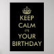 Funny keep calm it's your Birthday poster template. | Customisable text on black background. Keep calm and carry on design spoof. Black and faux gold colour.