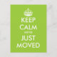 Funny keep calm moving postcard for new home. Make your own funny keep calm and carry on parody design for your new address. Keepcalm humour for home and business. Change quantity to get the cheapest price per post card. Personalised text on the back. Apple green colour.