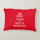 Funny keep calm reserved seating throw pillow. Red and white colour cushion for bed, sofa or couch. Create your own funny keep calm and carry on parody for wedding party, bridal shower, anniversary, birthday etc. Vintage keepcalm typography template with crown. Other cute keepcalmandcarryon spoof examples: Keep calm and party on. Keep calm and love me. Keep calm and marry me. Trendy home decor for men women and kids. Fun cushion with doubled sided print sign for VIP, bride and groom, etc. Customisable background colour.