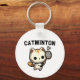 kitty cat playing badminton sport keychain, and the funny quote pun , Catminton.