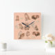 FUNNY KITTY CAT STORIES IN PINK SQUARE WALL CLOCK