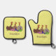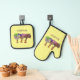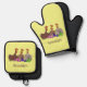 Funny knitting chickens cartoon illustration oven mitt & pot holder set
