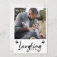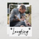 Funny Laughing All The Way saying in hand lettered brush script holiday card with one photo on front along with cute pawprints. There are four photos with your message and names on back. This card will be a keeper and people are going to love it. See coordinating items in our shop, Enchanted Finch.
