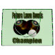 Pictured are two colored lawn bowls with a jack and the words Future lawn bowls champion