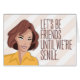 Try not to over-think this, but our “Let’s be friends until we’re senile” proclamation might the perfect way to keep friendship alive forever. Trendy cover illustration on a wide, diagonal-striped background.