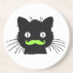 FUNNY LIME GREEN MUSTACHE VINTAGE BLACK CAT COASTER