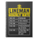 Funny Lineman Hourly Rate chart design. Customize it as you wish. Great gift idea for every lineman and electrician on Christmas or Birthday.
