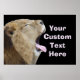 A fun, attention-getting poster print with an original photo of a lion with his mouth wide open, and his tongue sticking way out ready for your own funny custom text in pink to match his tongue in loud bold text blasting right next to his open mouth showing his big teeth. How about "Look Ma, No Cavities" or "Open Wide" or "Say Ahhh" or "Roar" or "I'm King Of The Jungle!" A perfect, cute, funny poster for dentist offices and other doctor's offices, like a paediatrician. Kids of all ages will get a kick out of this poster! Contrasting black background colour can easily be changed to any colour. Just click on "Customise it" and then click on "edit" and then "background" to change it. Text and font style can also be easily changed.