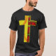 I give wanted to give this a 4 instead of a 5 because these Basic DARK T0shirts run unexpectedly SLIM or Narrow. Which is great if you do not have a potbelly, but I have a paunch. It isn't the shirt's fault that I've got a beer belly. The design and shirt itself is a quality cotton shirt. The color is more of a deep purple, but still a very pretty color. The Basic DARK T-shirts run a bit SLIMMER than the Basic Ts. The neck is a fraction narrower (or seems to be narrower) also. I'm a paunchy middle-aged woman and my neck is 12 inches (31cm) thick and the neckline fell about the same as in the photo of the man, and I had the desire to tug it a bit. So if you're a thick necked man or like loose shirts, be aware these are slimmer shirts. Once I get rid of my lockdown paunch it'll look great. The shirt washed well in cold water with no apparent bleeding. We don't have a dryer, so it hung dry. Did not shrink. Love the colors and the design. The design looks smaller on my shirt than it does on the model on-line. But still, it looks good on the shirt. The printing looks as it does on the model, just the size seems fractionally smaller. Washed garment in cold water, hung dry and design appeared unaffected.
