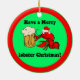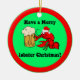 Cute and funny Christmas ornament for lobster lovers. Lobster with santa hat and beer wishing yoju a Merry Christmas.