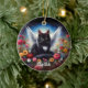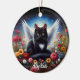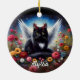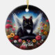 Funny Long Haired Black Demon and Angel Cat Ceramic Tree Decoration