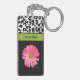 A funny lost and found keychain for the girl who is always losing her stuff with a trendy black and white leopard pattern embellished with a girly pink daisy and the words: I've lost this thing. Yes, AGAIN! If you found it, you can reach me here: contact info.