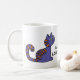 A cute blue and orange striped cartoon cat is the feature on each side of this "love my cat" mug. The black text in the middle says Love me, love my cat! *This design uses image © Graphics Factory.com*