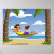 Funny Man Relaxing in Beach Hammock Poster