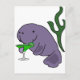 Funny Manatee Drinking Margarita Cartoon Postcard