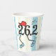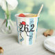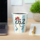 Cute, funny, colourful running 26.2 marathoner character © with a red cap and blue shoes! Funny Marathon Sports themed for the long distance twenty-six point two mile runner! Funny Marathon Cups for people who run long distances or running instructors or coaches. The Background is a Blue and Yellow Striped Pattern to highlight the Sports Figure.