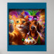 Funny Mardi Gras Cat Dachshund Selfie Squad Poster