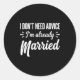 Funny Married Saying No Advice Needed Husband Wife Classic Round Sticker