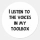 I listen to the voices in my toolbox. Funny Mechanic t-shirts, mugs, tote bags, hoodies, sweatshirts, keychains, mousepads and other apparel and gifts for Mechanics.