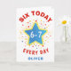 Funny Meme Six Today 6-7 Every Day Birthday Kid's Card. Celebrate their big 6th birthday with a touch of humor with this 'SIX TODAY 6-7 EVERY DAY' card. A gradient blue star, and firework bursts make this card playful and fun. Perfect for boys and girls. This fun design makes a great birthday personalized card. Add your name.