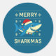 Funny Merry Sharkmas Christmas Shark Humor Classic Round Sticker