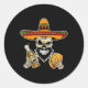 Funny Mexican Sugar Skull With Tacos And Beer Classic Round Sticker