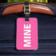 This funny pink luggage tag says it all! It says "mine" on the front loud and clear in white against the pink background. You can easily personalise the back of this funny mine luggage tag with your necessary details.