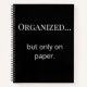 Stay stylish while keeping life “together” with this funny minimalist spiral notebook. Featuring the quote “Organized… but only on paper” on the front and a customizable initial on the back, this black and white typography design blends humor with a personal touch. Perfect for school, work, or everyday notes, this keepsake makes a thoughtful gift. Discover more modern minimalistic designs at Avery Lane Studios.