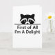 Funny Minimalist Raccoon First of All Im A Delight Card