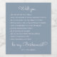 Funny Modern Dusty Blue Script Bridesmaid Proposal Wine Label