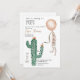 This dessert chic baby shower invitation will set the theme for a trendy party. The gender neutral colours make the invite perfect for baby boy and baby girls showers. This design is filled with bohemian elements and showcases a fun ballon tied up to a cactus tree. A funny and modern baby shower invitation.