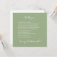 Pop the question to your bridesmaids with a cute and personalised proposal card. This design features modern script for the question "Will you be my bridesmaid?" and funny questions to ask in trendy sage green. Customise this invitation card with your own questions if you like to make it uniquely yours! On the back there is room for your own personal message. A great addition to any bridesmaid proposal box. Matching wine labels are available in my shop!