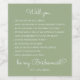 Funny Modern Sage Green Script Bridesmaid Proposal Wine Label