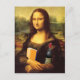 Funny Mona Lisa with Wine and Book Postcard