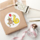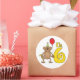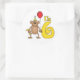 Cute and funny monkey wearing a birthday hat holding a banana and red balloon standing next to a huge number 6 on sixth birthday t-shirts, hoodies, buttons, stickers, totebags and more.