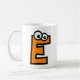 Funny monogram letter E in orange and black with cartoon eyes. Easily customise and choose your own background colour. Image available on various gifts and products.